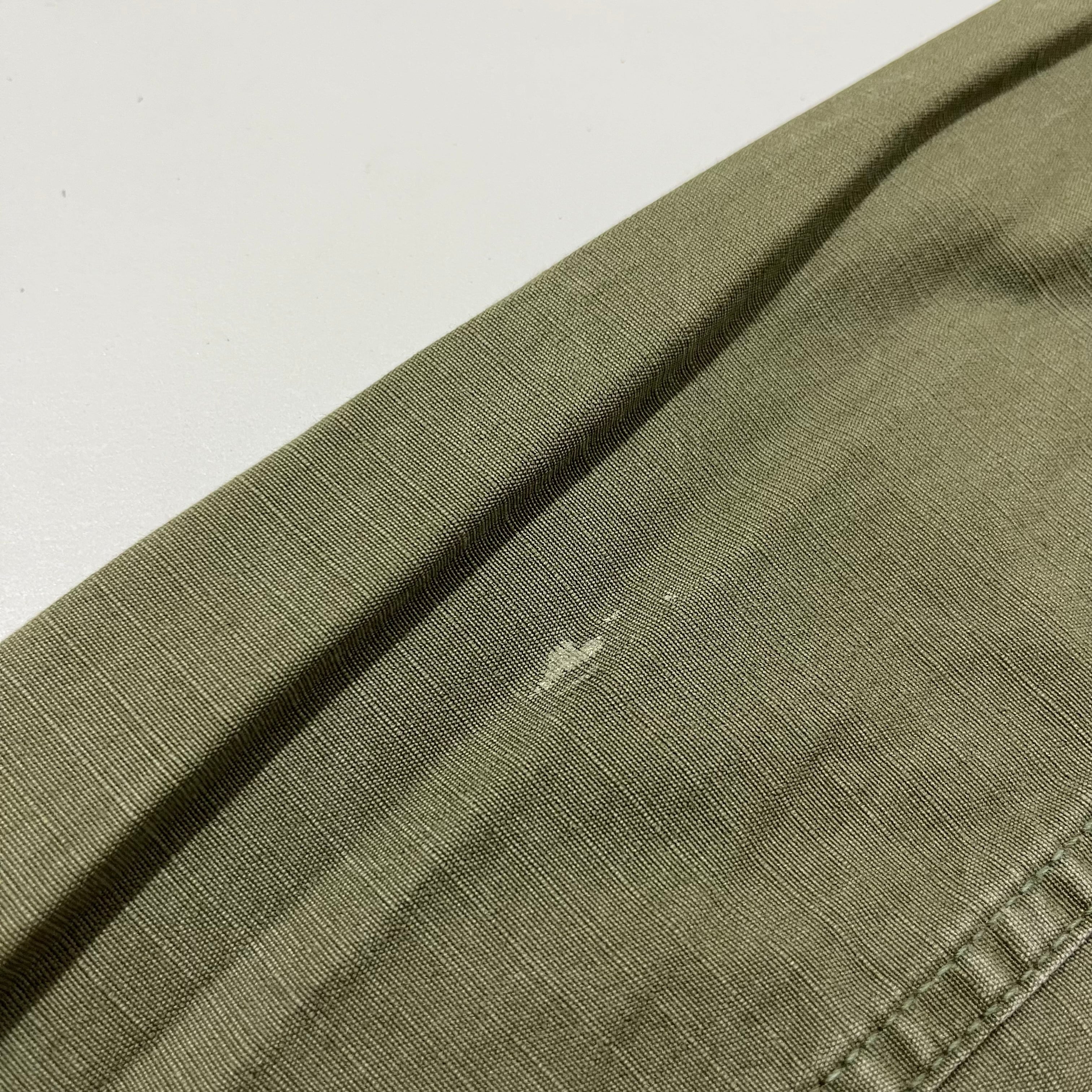背面左袖汚れ、右脇付近縫製ミス、所々に薄汚れ、全体的に色褪せあり。