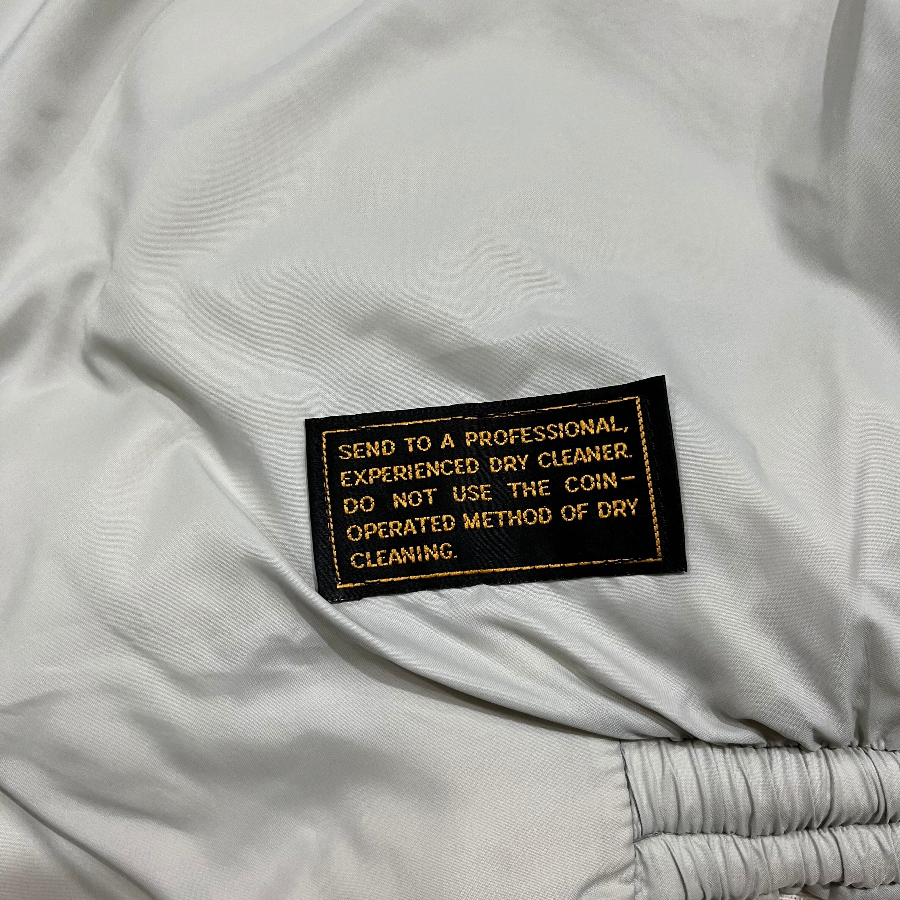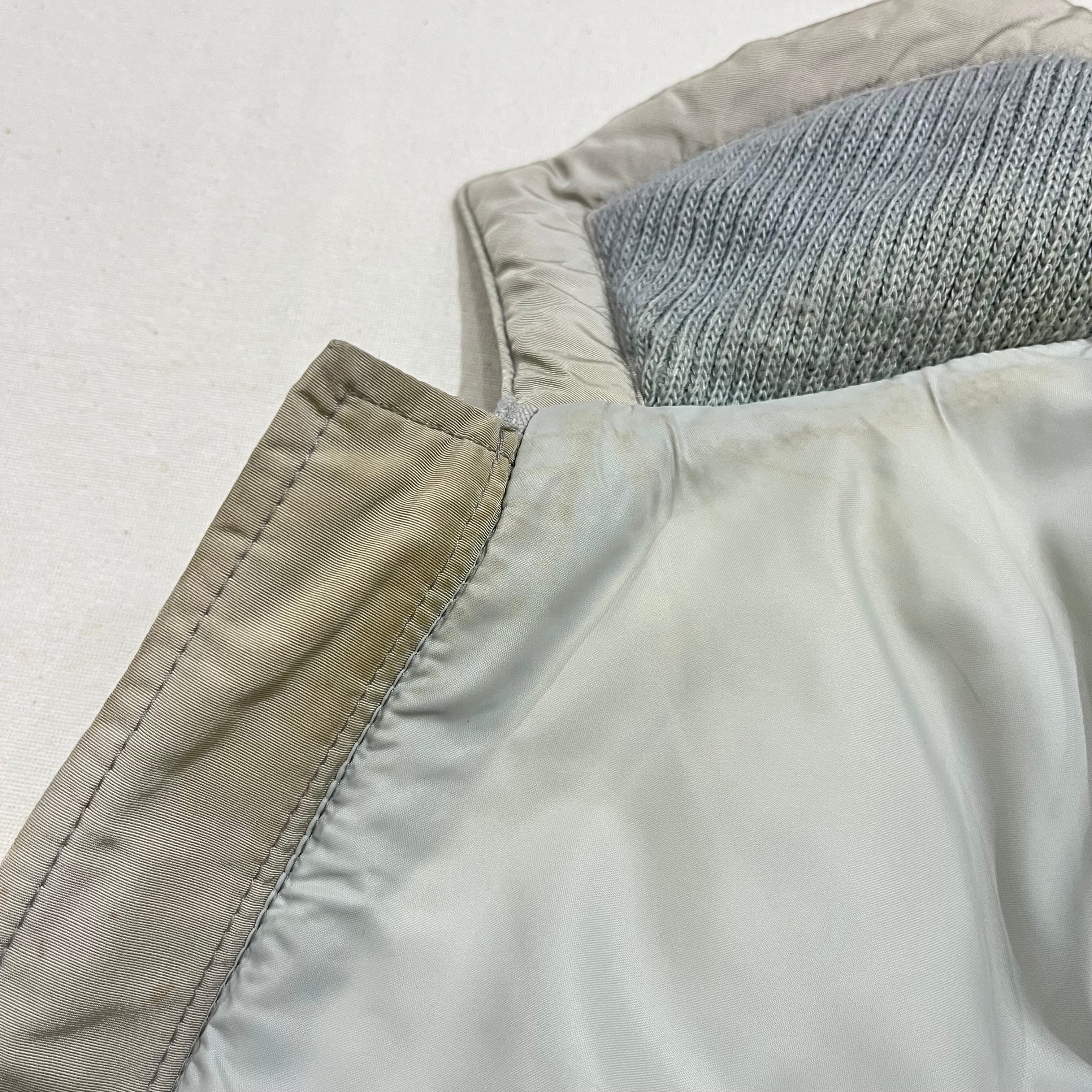 ダウン抜け、襟黄ばみ、腹部付近シミ、所々にスレ、汚れ、薄ら黄ばみあり。