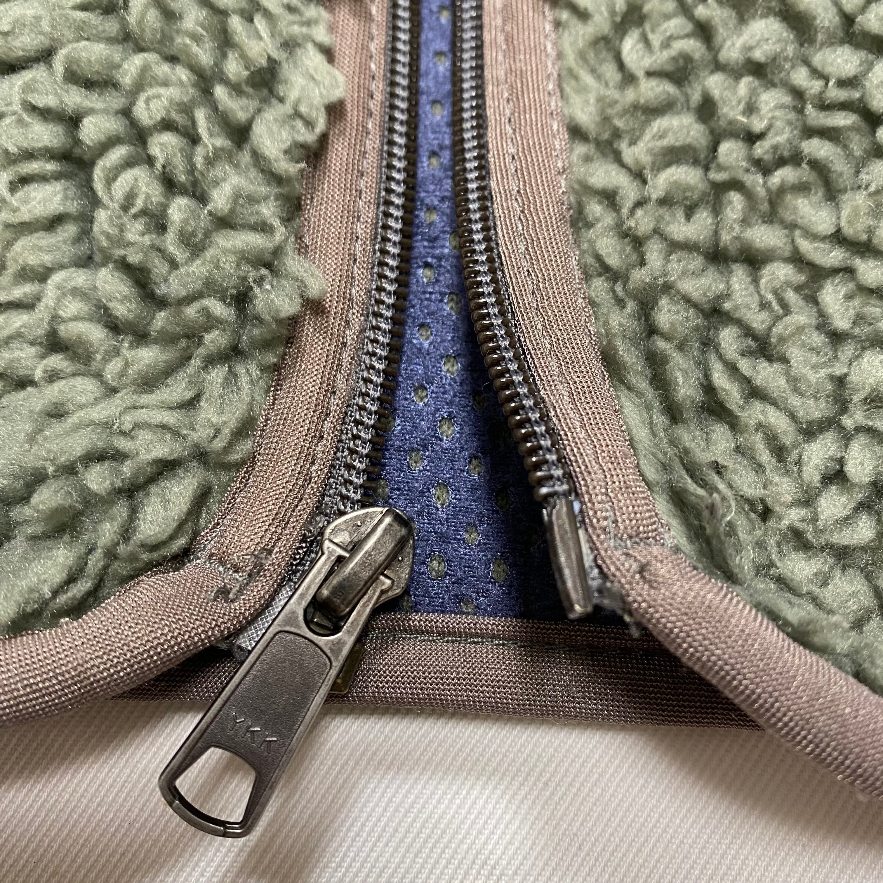 パイピングにスレ、毛羽、所々フリース潰れあり。