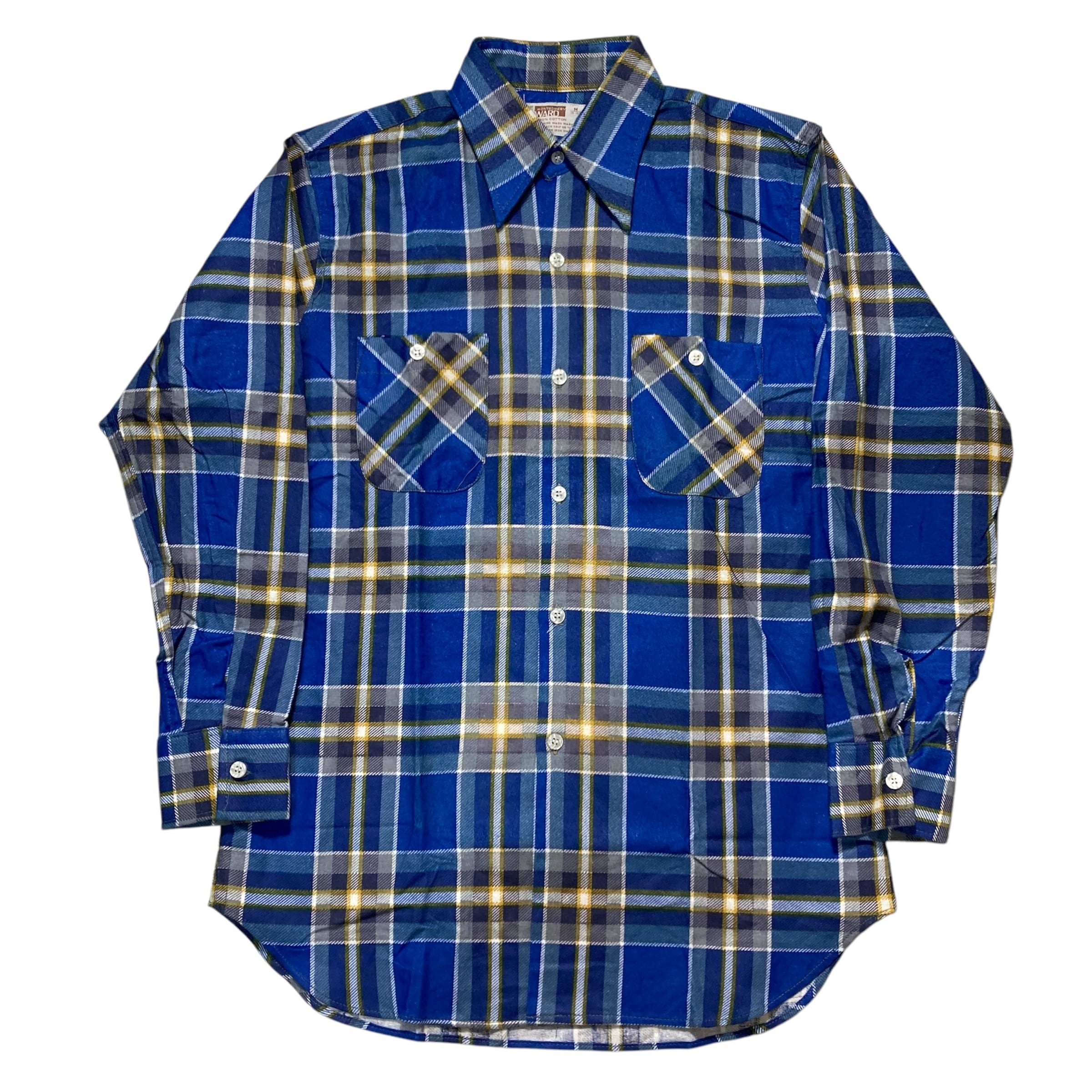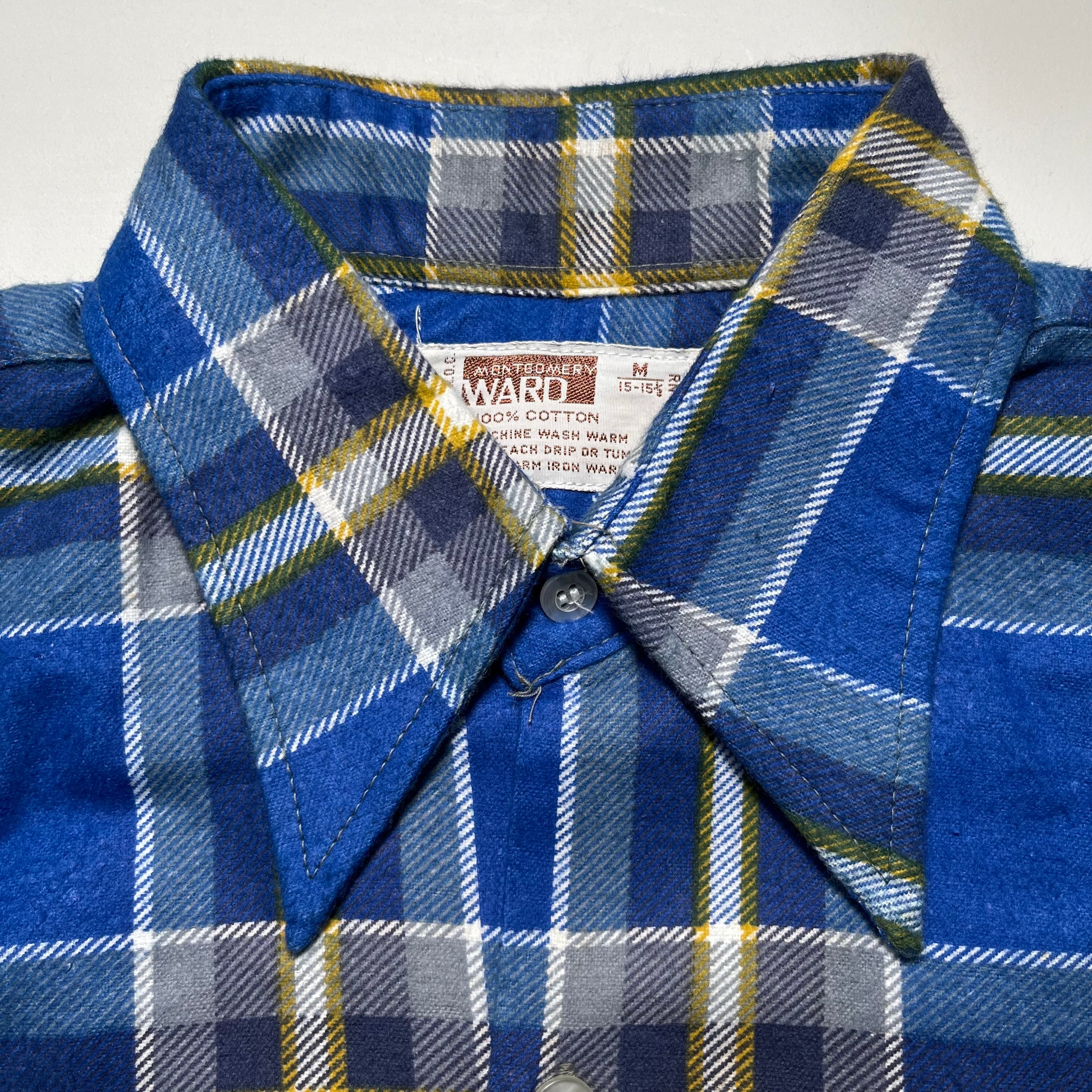 NOS 70's Montgomery Word cotton printed plaid flannel shirt