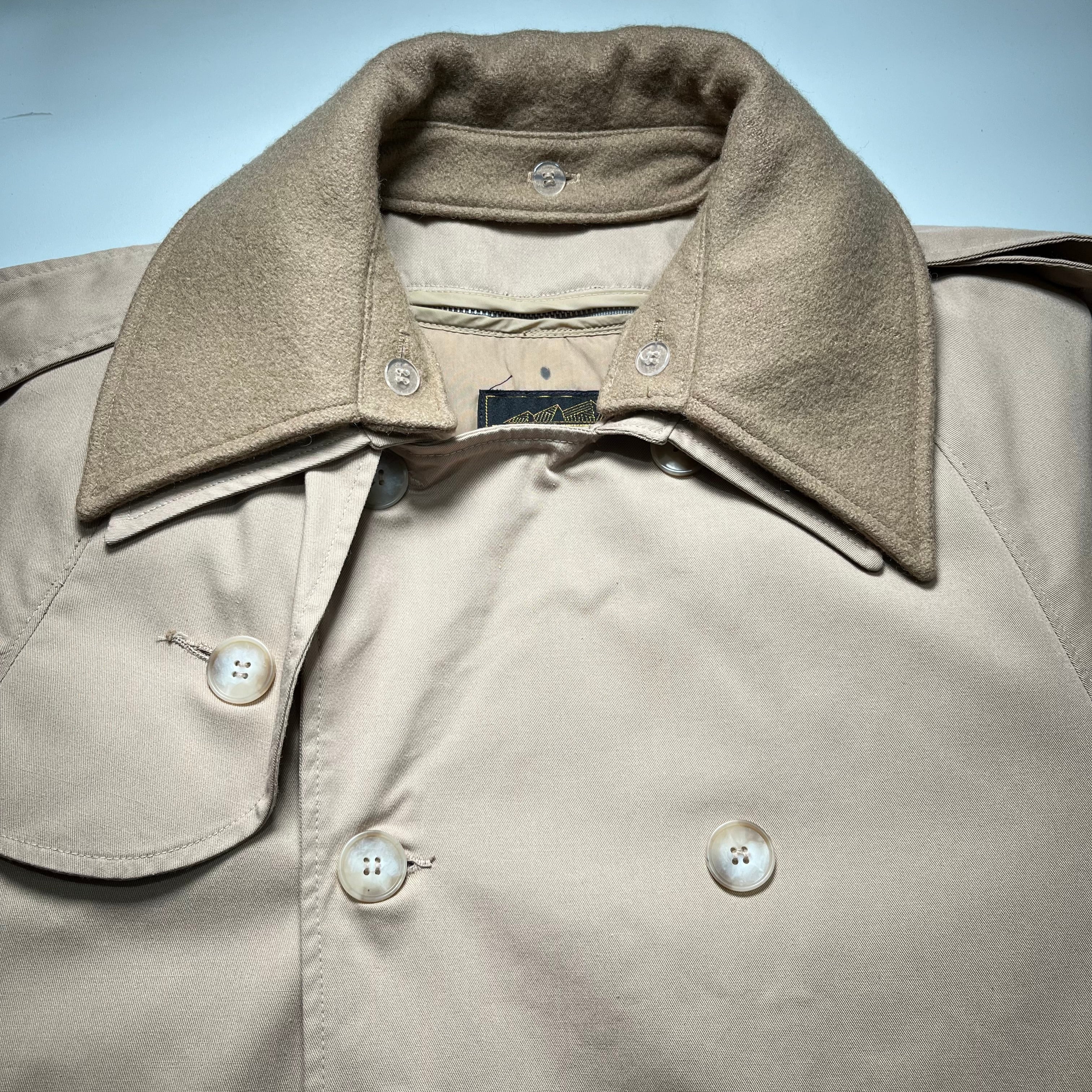 襟虫食い、ライナーダウン抜け、シミ、前面左袖付近小キズあり。