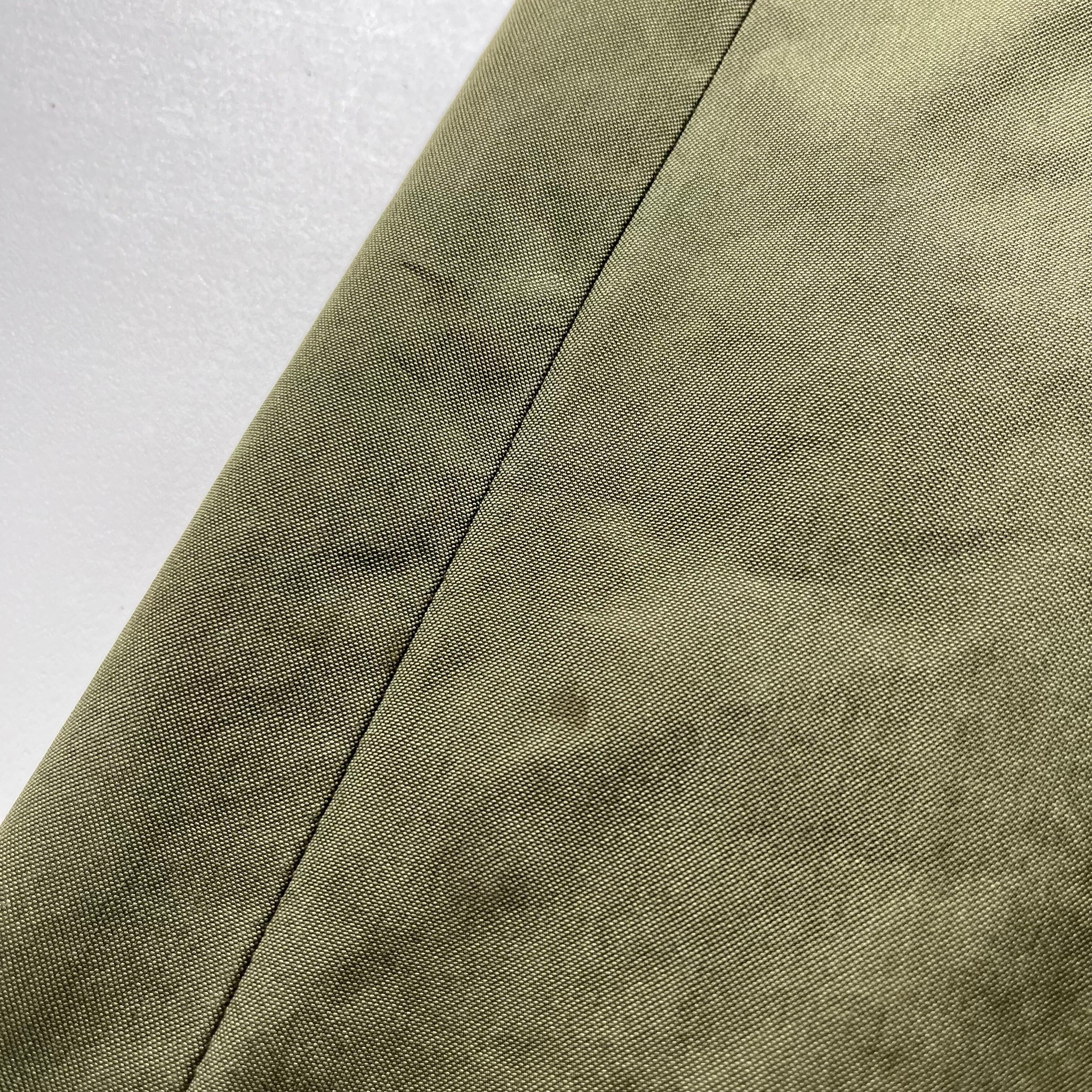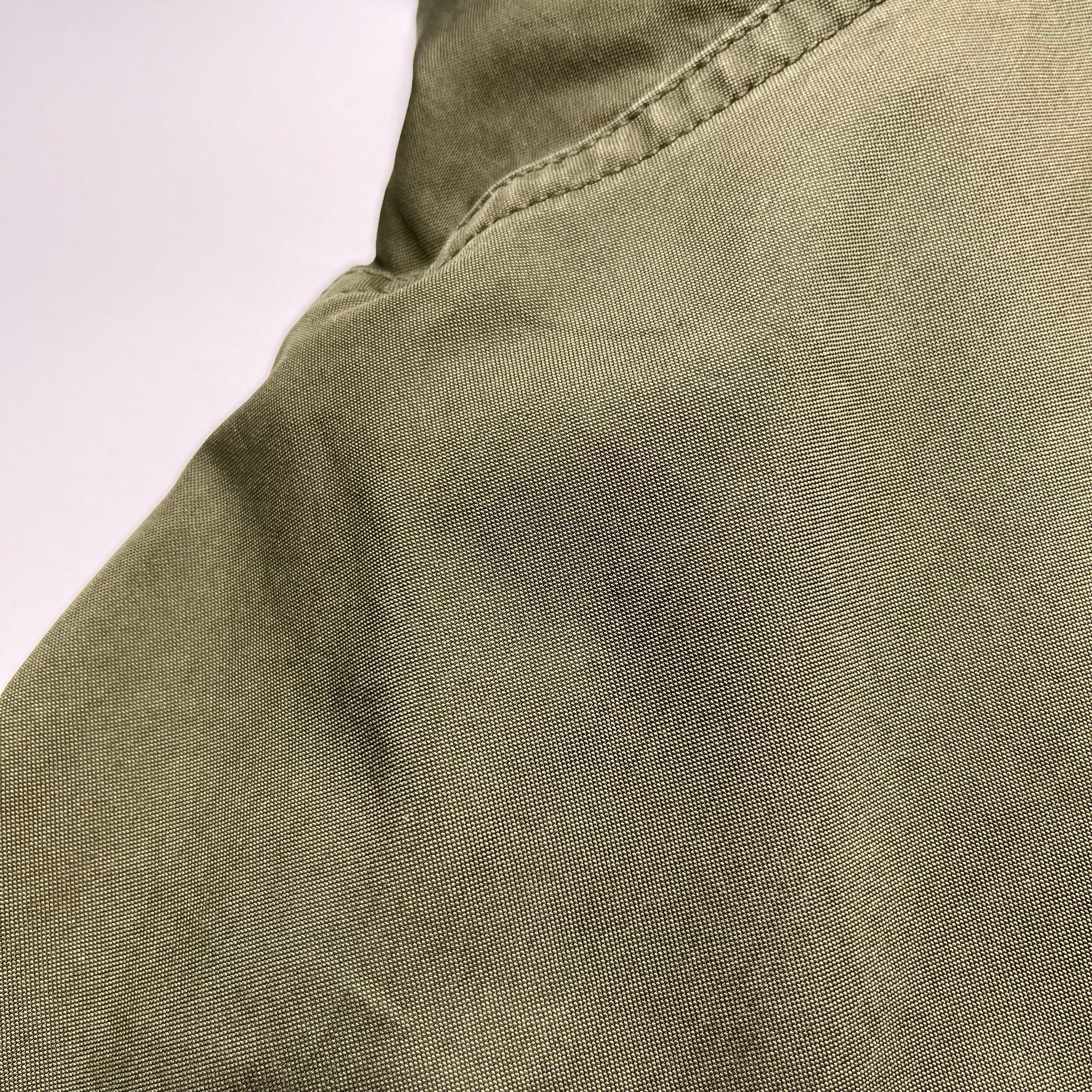 ライナーステッチほつれ、両袖先ゴム劣化、右袖先ボタン交換、所々にシミあり。