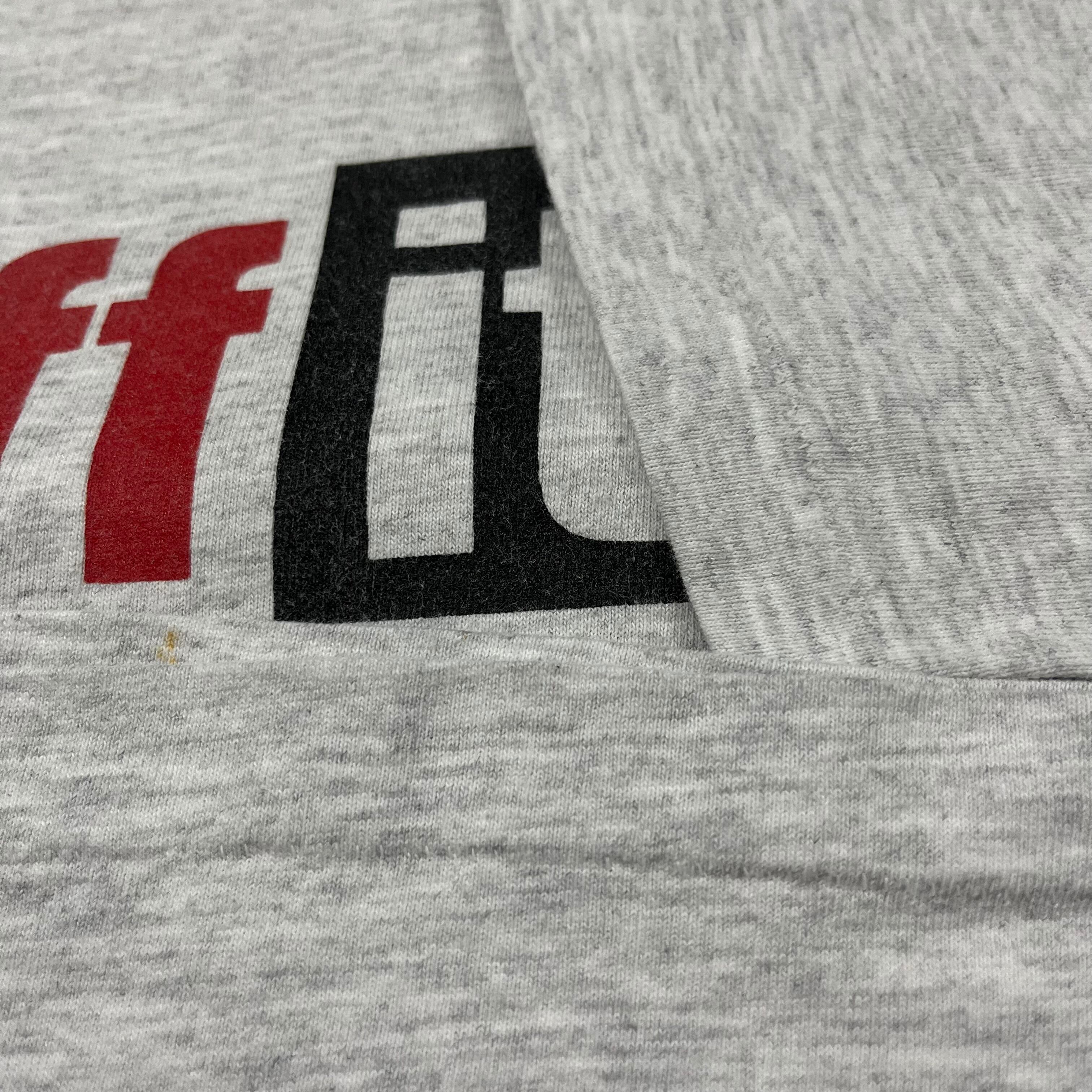プリント割れ、襟リペア、前面裾内側シミあり、所々薄ら黄ばみあり。