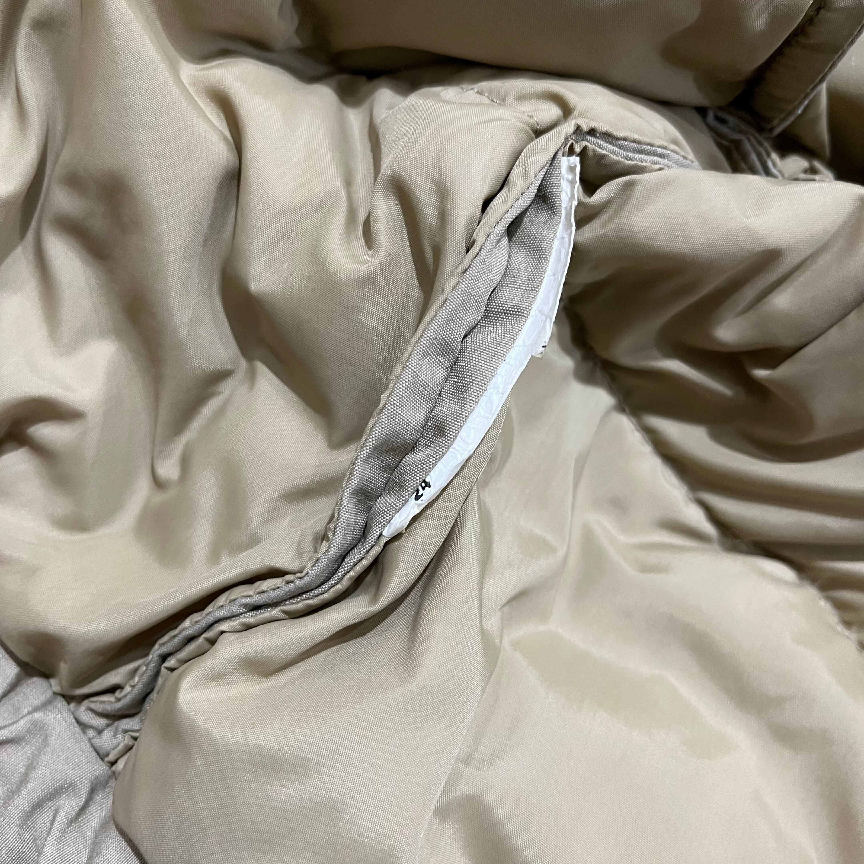 ダウン抜け、フード欠損、所々にスレ、キズ、汚れあり。